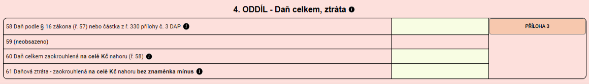 Ve 4. oddíle se pak vyčíslí samotná daň.