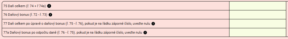 Jakmile dáte dílčí základy daně dohromady, v posledních řádcích Vám následně vyjde celkový základ daně.